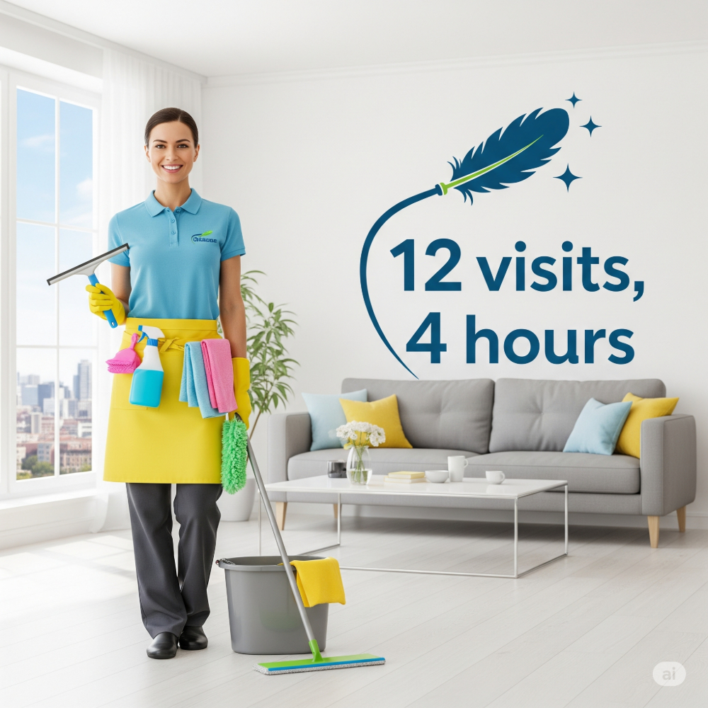 اشتراك عاملة منزليه 12 زيارة 4 ساعات بدون مبيت