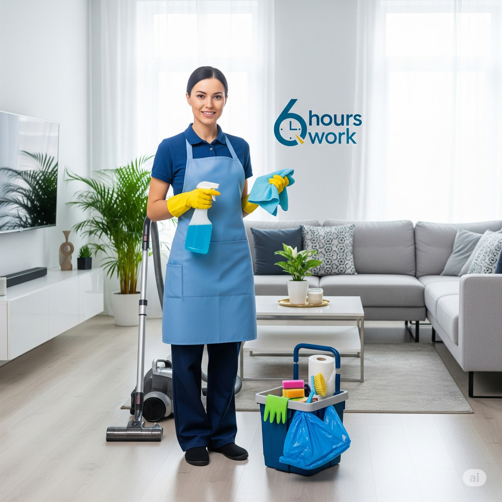 - تشمل هذه الخدمة جميع المهام المنزلية التي تُقدَّم داخل المنزل فقط، ويُستثنى من ذلك أي أعمال خارجية. تتركز المهام على أعمال التنظيف، الترتيب، المسح، والغسيل، مع استثناء مهام الطبخ ورعاية الأطفال.